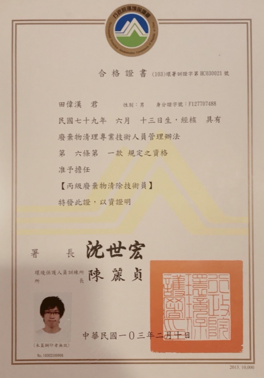 環保署合格證書